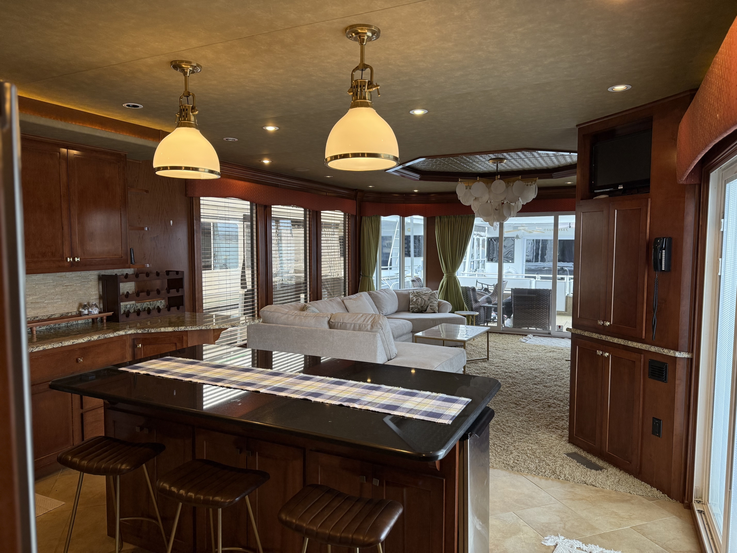 – Top Deck: 52″ Sony Drop-down TV plus two 32" Flanking TVs w/ DVR