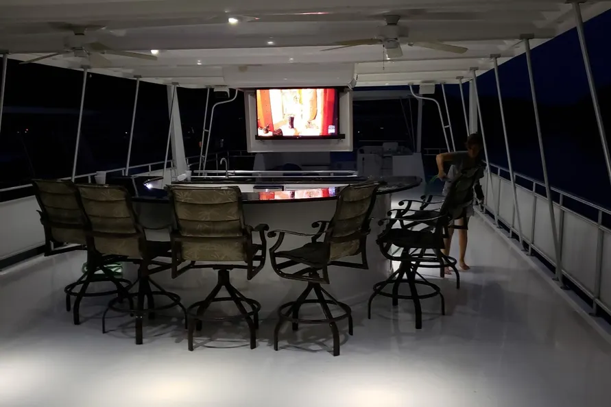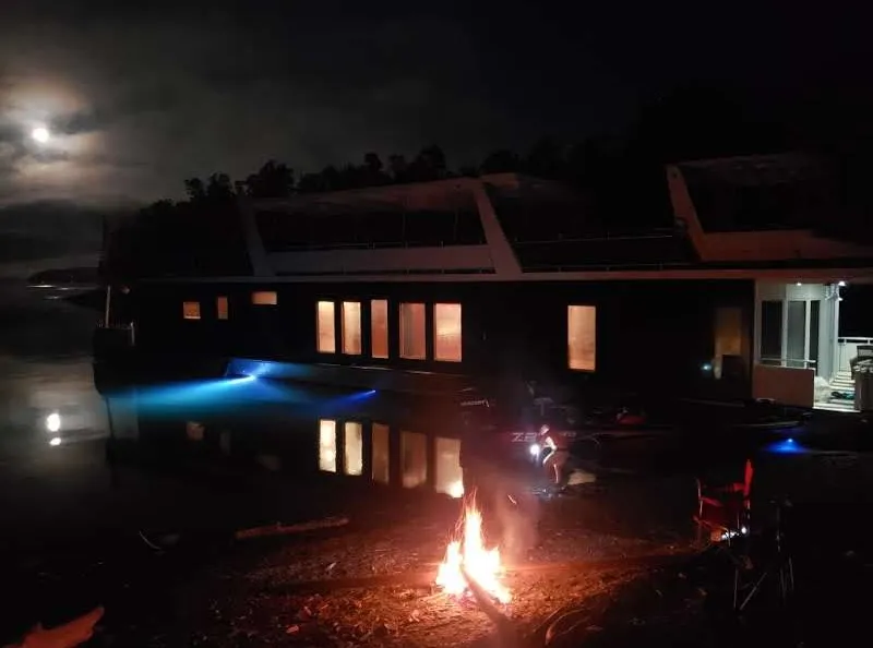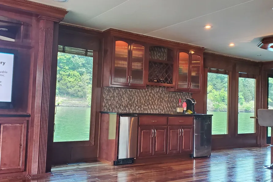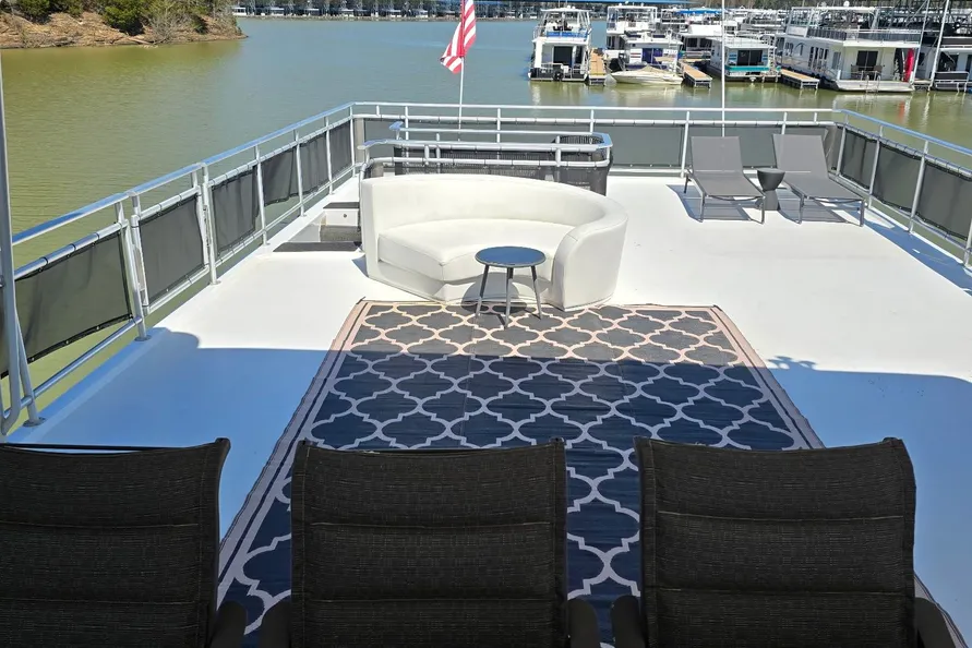 Extra spacious 103 feet  long and  21feet wide. Own one of the few houseboats that’s 21feet in width. You can feel the extra space as soon as you walk in the family room/ kitchen area. It also has five bedrooms and 2.5 baths.